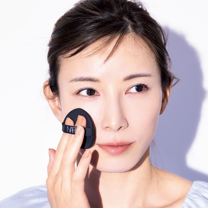 しっかりと密着させるために、細かくスタンプのようにパフでタップして。スワイプして塗るとムラになるので注意。