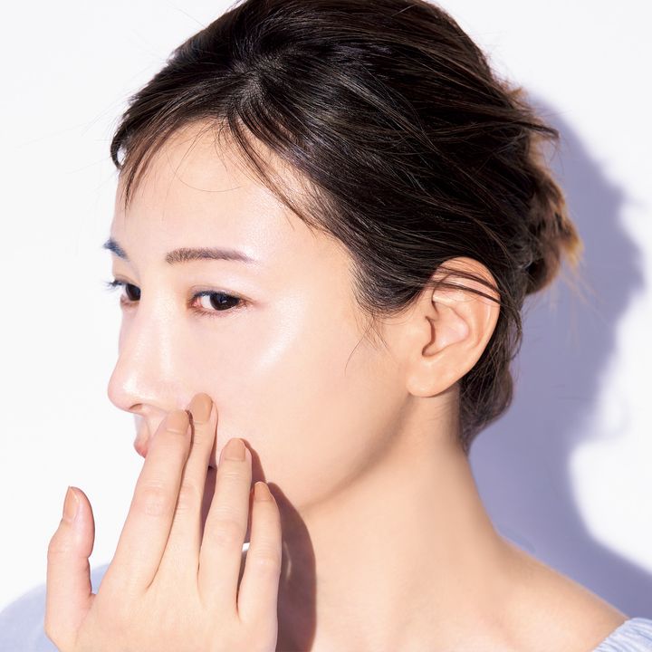 小鼻や口角横の赤みやくすみが出やすい部分にも丁寧に重ねて塗ることで、肌のにごりを消すことができます。