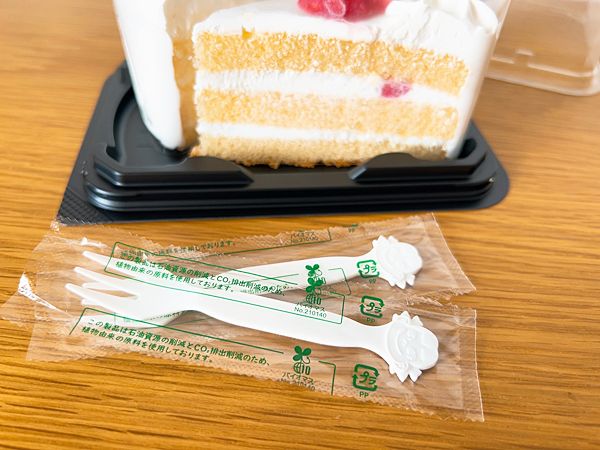 「ショートケーキ」を箱から出してみるとこんな感じ。小さいかと思っていましたが、コンビニなどで売っているカットケーキの大きさです。それなのに、2個で500円ってすごい!
