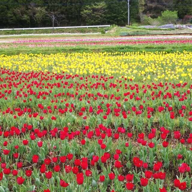 道の駅の周辺のチューリップ ©道の駅 原尻の滝