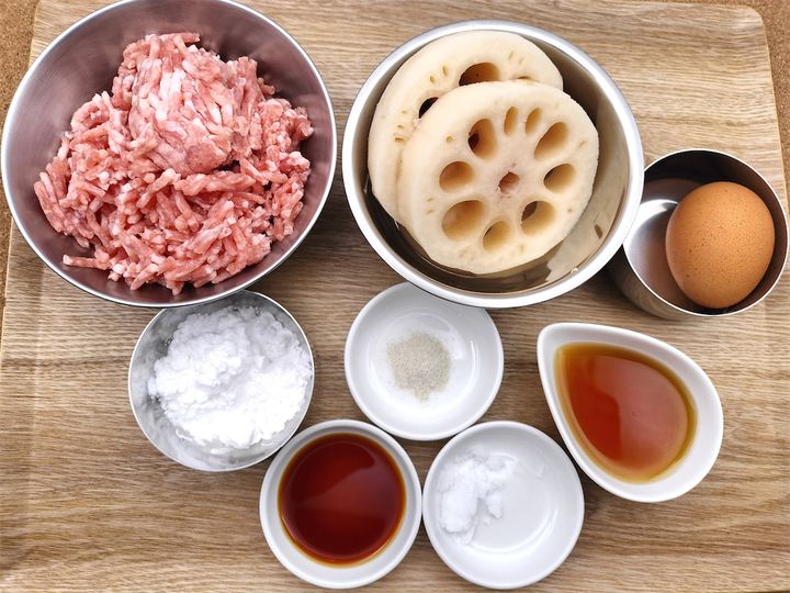れんこんは100gをみじん切りに、50gをすりおろしておきます。
