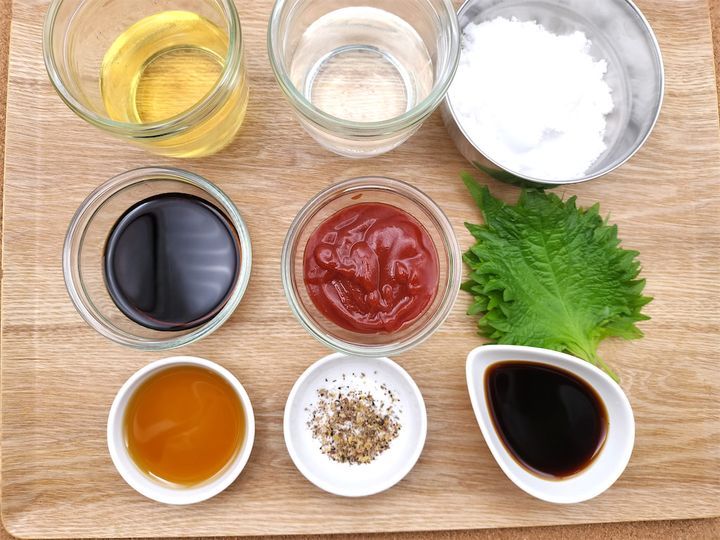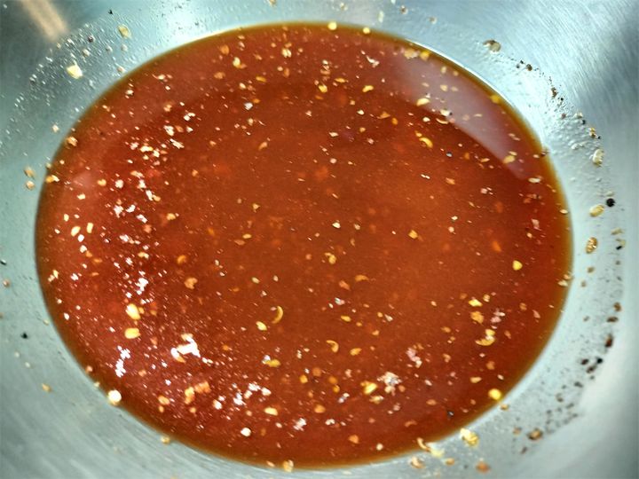 6. ボウルにしょうゆ、酢、砂糖、ケチャップ、水、リーペリンソース、花椒を入れて混ぜ合わせます。