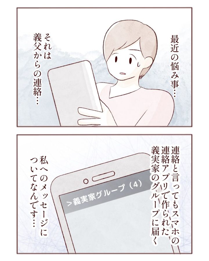 カナコさんは悩んでいました。それは夫コウへイさんのお父さん、義父からの連絡のことでした。