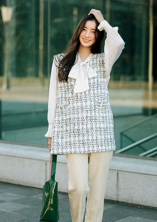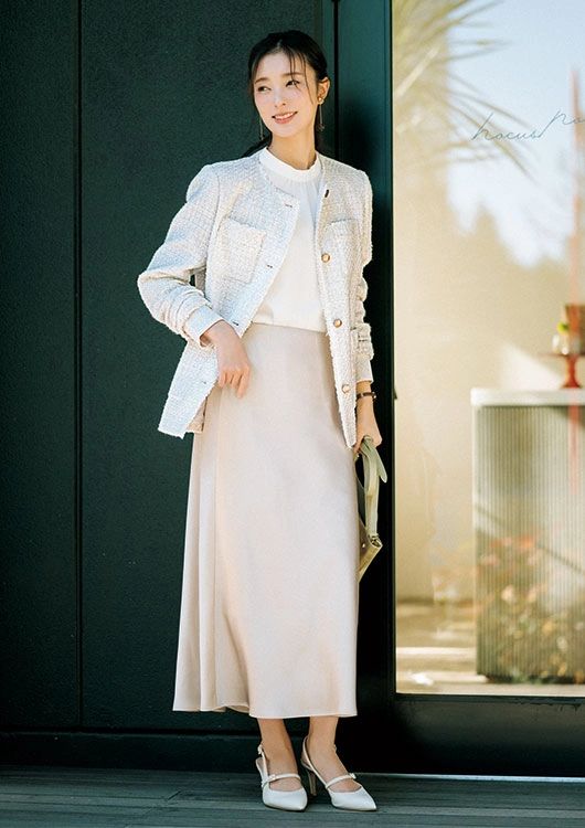 白ツイードを淡色でつないでコンサバの一歩先へ