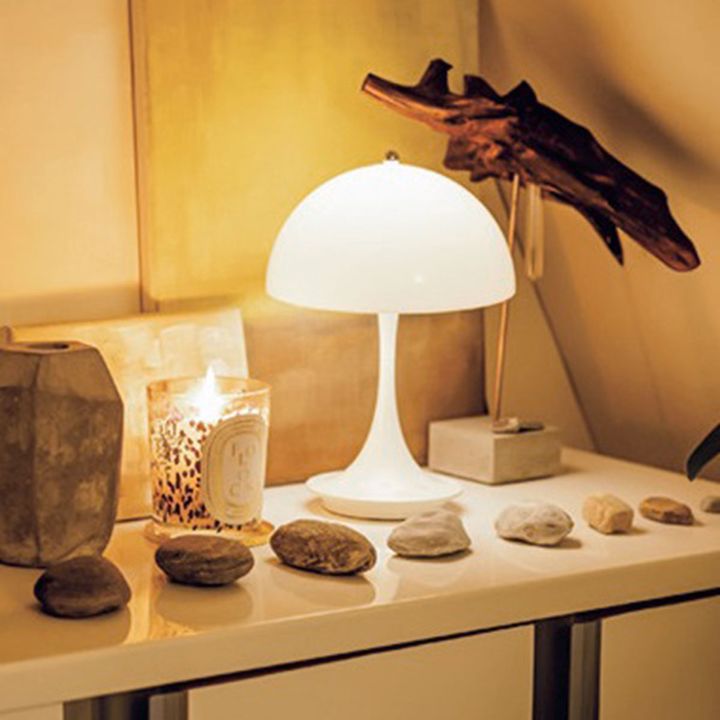 ヴァーナー・パントンがデザインした照明のなかで最もポピュラーなテーブルランプ。充電式&LED光源内蔵で、持ち運んでお部屋のさまざまなコーナーに置ける小型サイズで展開。¥39,600~(ルイスポールセン東京ストア)