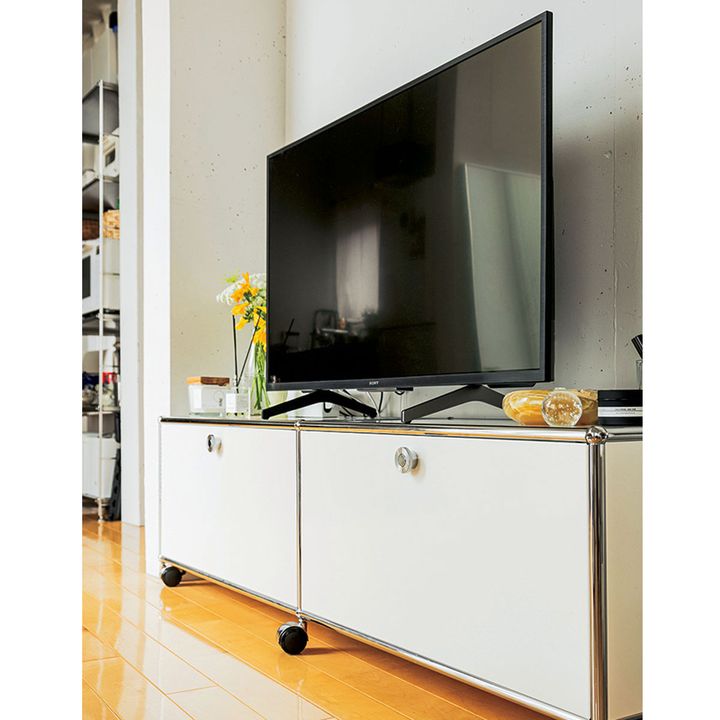 スイスのインテリアメーカーを代表するモジュラーシステム家具。部屋のインテリアに合わせて選べる豊富なカラーバリエーションも魅力。¥198,338※ドロップダウンドア×2、キャスター付き(USM)