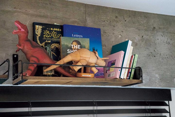 カーテンレールの上も活用したいスペース。玄関を入ってすぐ目に入る位置に付けた棚には、お気に入りアイテムだけを飾って、心の充電スポットに。(森本萌乃さん・会社経営)