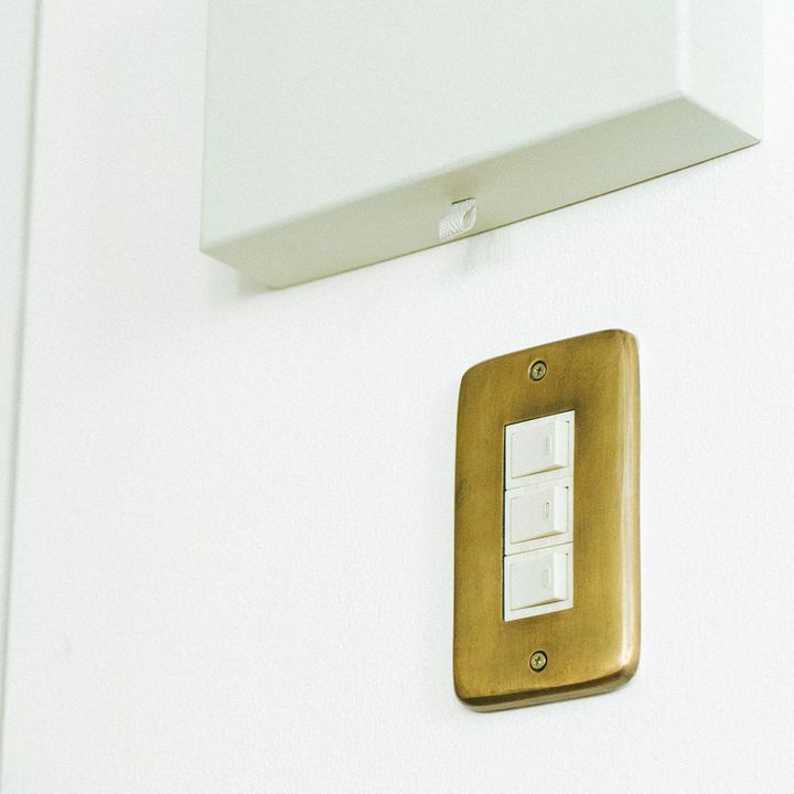 どの部屋にも必ずあるスイッチやコンセントは生活感の塊。真鍮や木、陶器など、様々な素材のカバーが市販されているので、インテリアに合わせて選べます。(Mamiさん・メディアクリエイター)