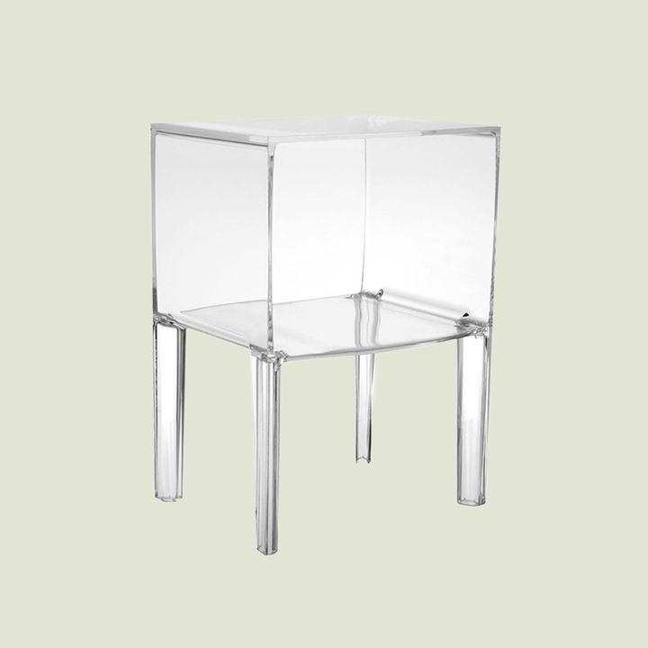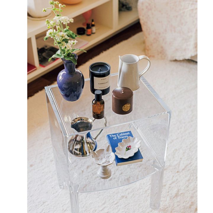 フィリップ・スタルクがデザインした、アクリル樹脂のコンソール。シンプルながら、直線的な脚と柔らかな曲線を持つ収納部からなるフォルムが優美な印象を与える。¥74,800(Kartell/トーヨーキッチンスタイル)