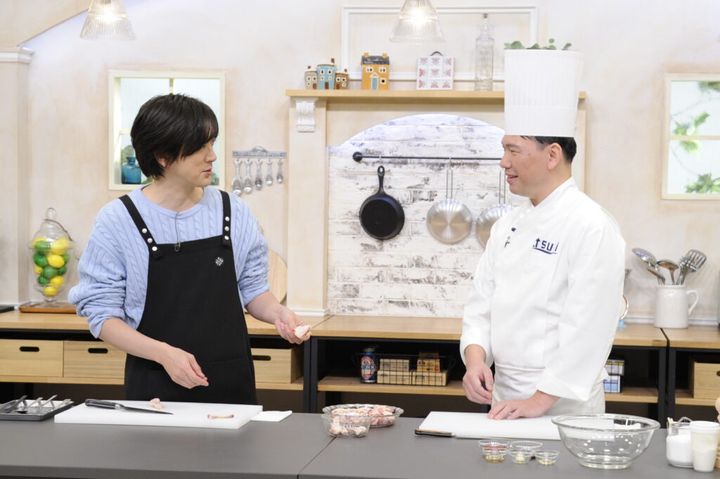 一度作ったことがあるとはいえ、忘れていることも多く、鶏の手羽先をチューリップ型に整える最初の工程から、いきなり四苦八苦させられるDAIGO。しかし、先生とのおしゃべりは楽しみたいのか、「テスト中に申し訳ないんですけど…」と脱線トークを切り出した。