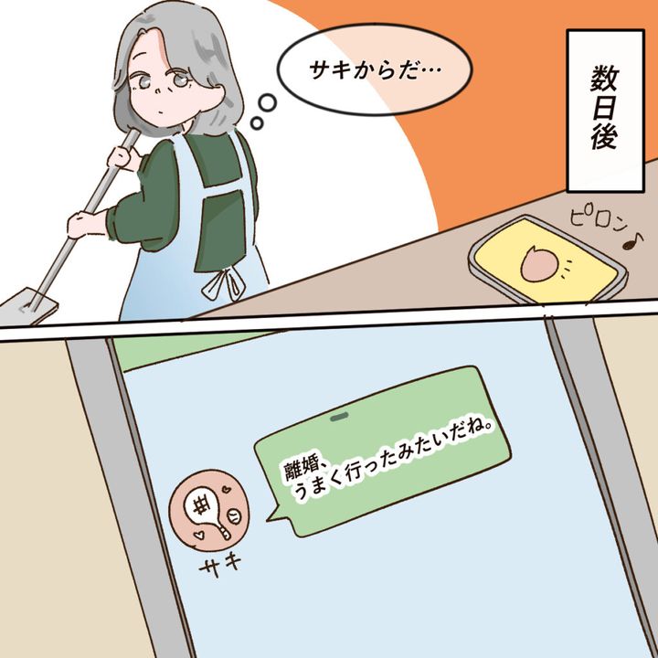 ケイコさんへのメッセージには、「離婚、うまく行ったみたいだね」とメッセージが残されていたのでした。