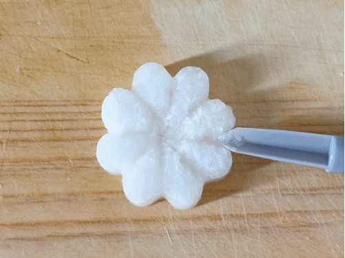 2.型ぬきした大根の表面をナイフで切り込みをいれ、凹凸をつけます。