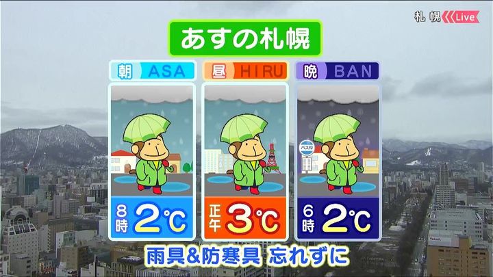 あす3日(木)の札幌です!朝昼晩の天気をもんすけでお伝えします!