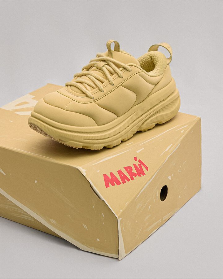 「MARNI」が、パフォーマンスフットウェアおよびアパレルブランド「HOKA」とコラボレーションしたスニーカー「BONDI B3LS」を発売。