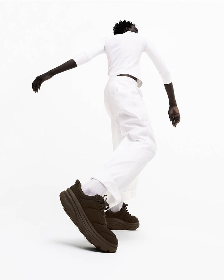 アヴァンギャルドな創造性を持つ「MARNI」と、優れたクッション性と身体へのサポートを両立させたランニングシューズを特徴とする「HOKA」による初のコラボレーションとなる今作。