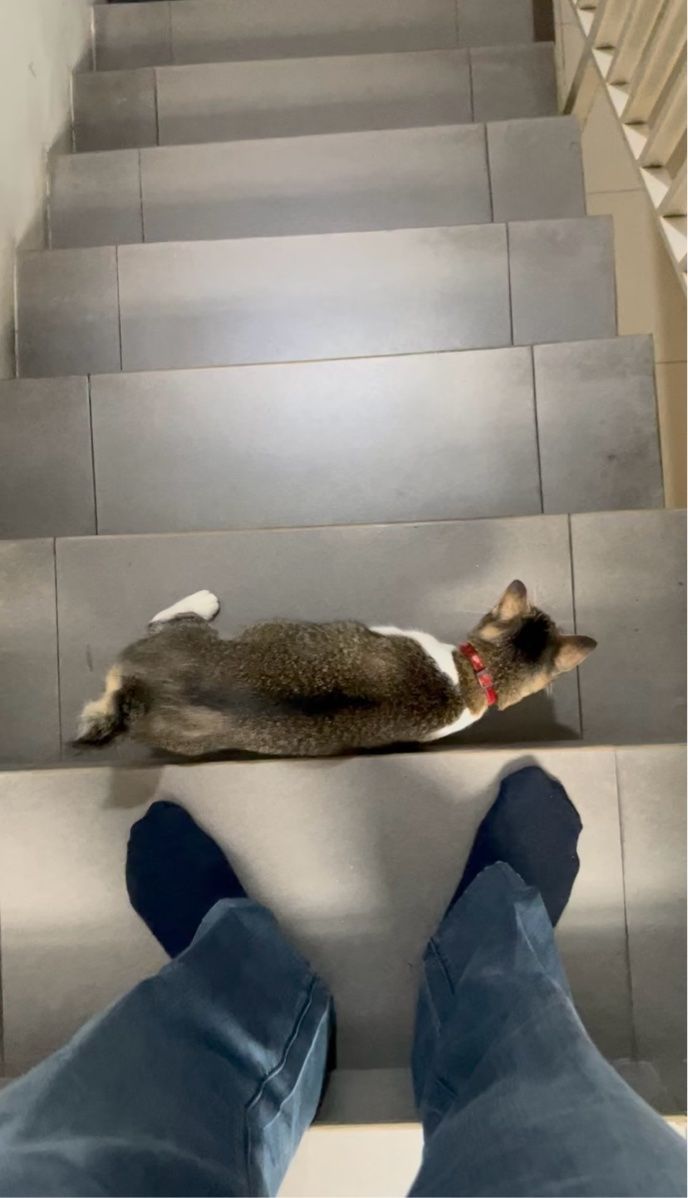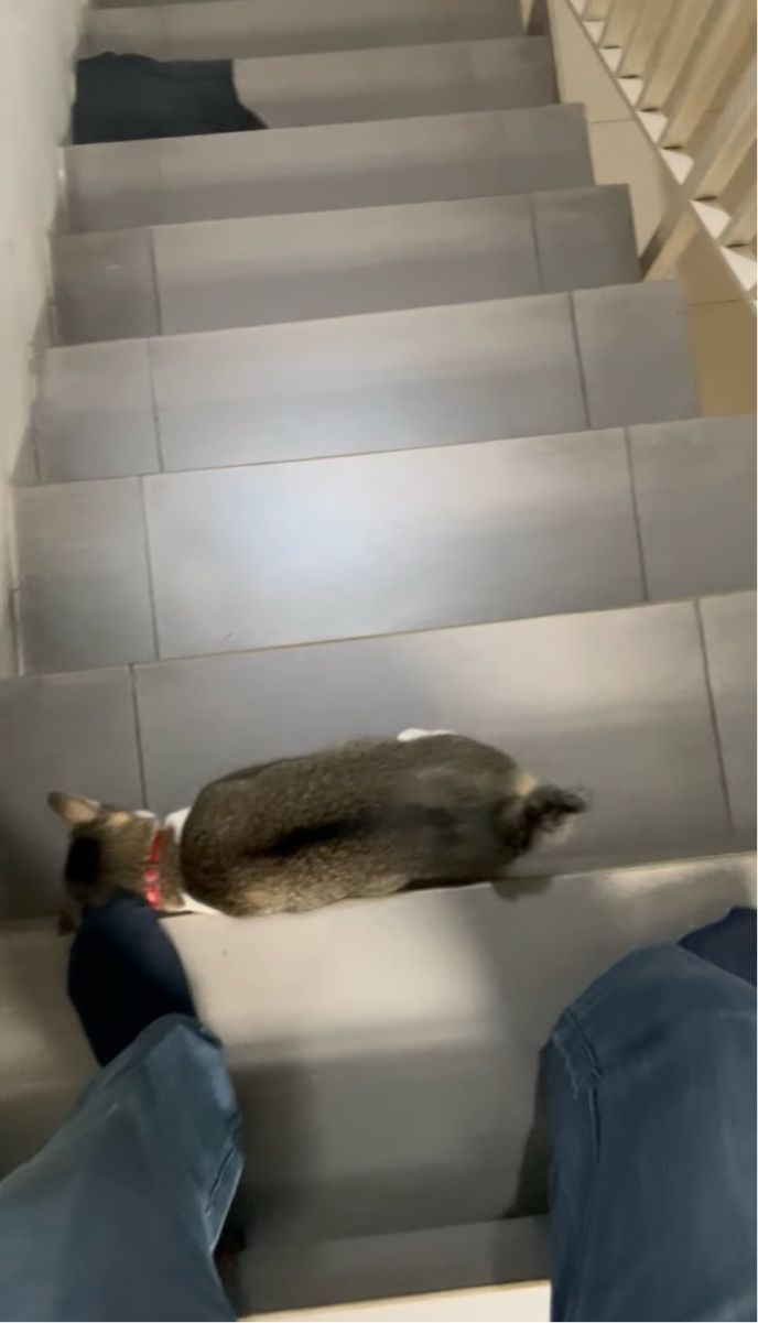そして、最後まで一緒に階段を下りていくふたり。 ずっと飼い主さんと一緒にいたいという、ネコの深い愛情が感じられるほっこりとするわんしーんでした。