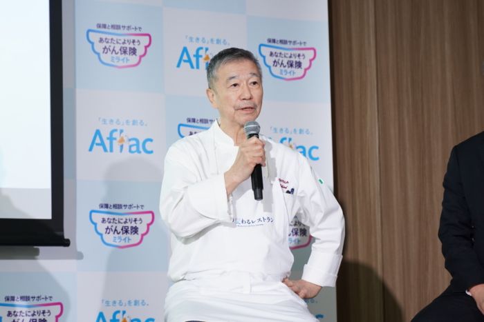 イベントには、悪性リンパ腫のステージ4を乗り越えたイタリアンの巨匠・落合務シェフが登場。ご自身の治療体験をもとに、「料理人にとって味覚を失うのは絶望。でも、自分が食べられなくなって初めて、患者さんの気持ちが分かった」と語ります。