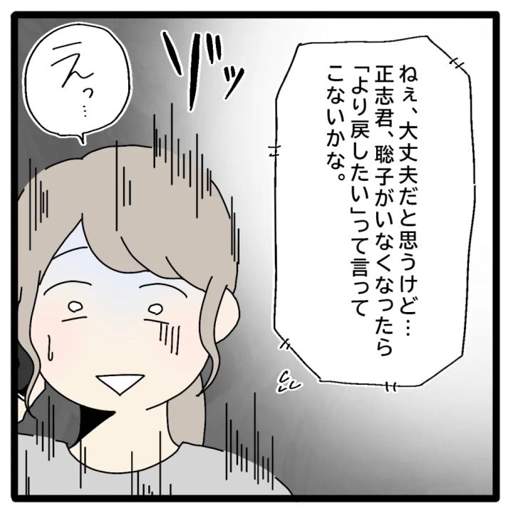 「ねぇ、大丈夫だと思うけど・・・・正志君、聡子がいなくなったら『より戻したい』って言ってこないかな。」と美沙さんが心配そうに言いました。