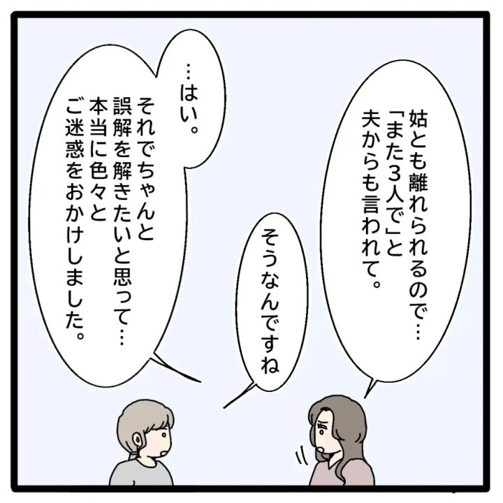 理恵さんが「そうなんですね」と言うと聡子さんは「・・・はい。それでちゃんと誤解を解きたいと思って・・・本当に色々とご迷惑をおかけしました」と謝りました。