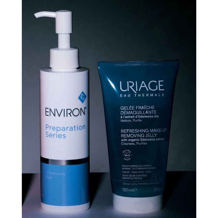 左:直接肌になじませてメイクオフに、また、手に取り泡立てると洗顔としても使える秀逸ジェル。肌の水分バランスを保ちながら余分な油分や汚れを優しく落とし、さっぱりと洗い上げる。エンビロン クレンジングジェル 200g ¥4,840(プロティア・ジャパン)右:バリア機能をサポートするユリアージュ温泉水をベースに使用。厚みのあるジェルが摩擦を与えることなくメイクをキャッチ。汚れや余分な皮脂までしっかりオフできる。ユリアージュ クレンジングジェリー 150ml ¥2,145(佐藤製薬)