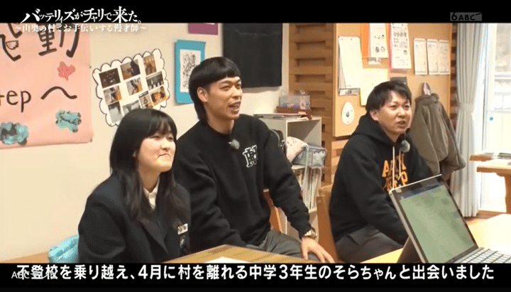 女子生徒とバッテリィズの舞台に、視聴者も感動。X上には、「良すぎた! 大号泣した!」「漫才で笑わすだけかと思ったら3人の感謝漫才でめちゃよかった」「中3の女の子がしっかりしすぎていて、ほんっまにいい子で、村の人との関係も素敵で、あったかいなぁ」「笑いたいのに号泣だったし野迫川村の人たちが笑っているの見て何故かさらに泣いちゃったよ……!!!!」といった声が続出した。