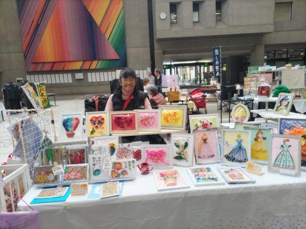 こちらは手の不自由な方が絵葉書から始めた、ハンドメイドのお店「ひまわり工房」。絵葉書だけでなく紙を使ったお花やプリンセスなどのアート作品もあり、どれもステキでした!お値段も安くて嬉しいです。
