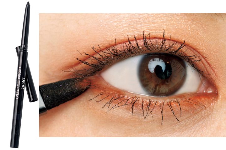 2.下まぶたキワのブラウンと漆黒インラインが目力の鍵。ディオールショウ スティロ ウォータープルーフ 091 マットブラック ¥4,510(パルファン・クリスチャン・ディオール)