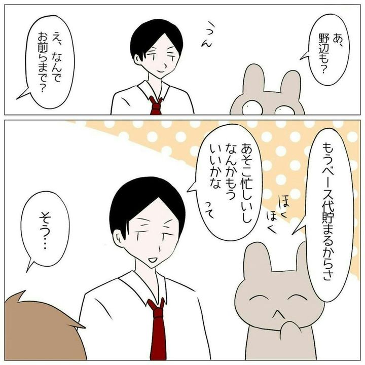 店長からは、田中くんも注意されてしまいました。今までの小林からの嫌がらせに加え、今回のできごとで、田中くんはアルバイトを辞めると言い出しました。たしかに、居心地が悪い場所でバイトをし続けても、消耗してしまうだけですね。