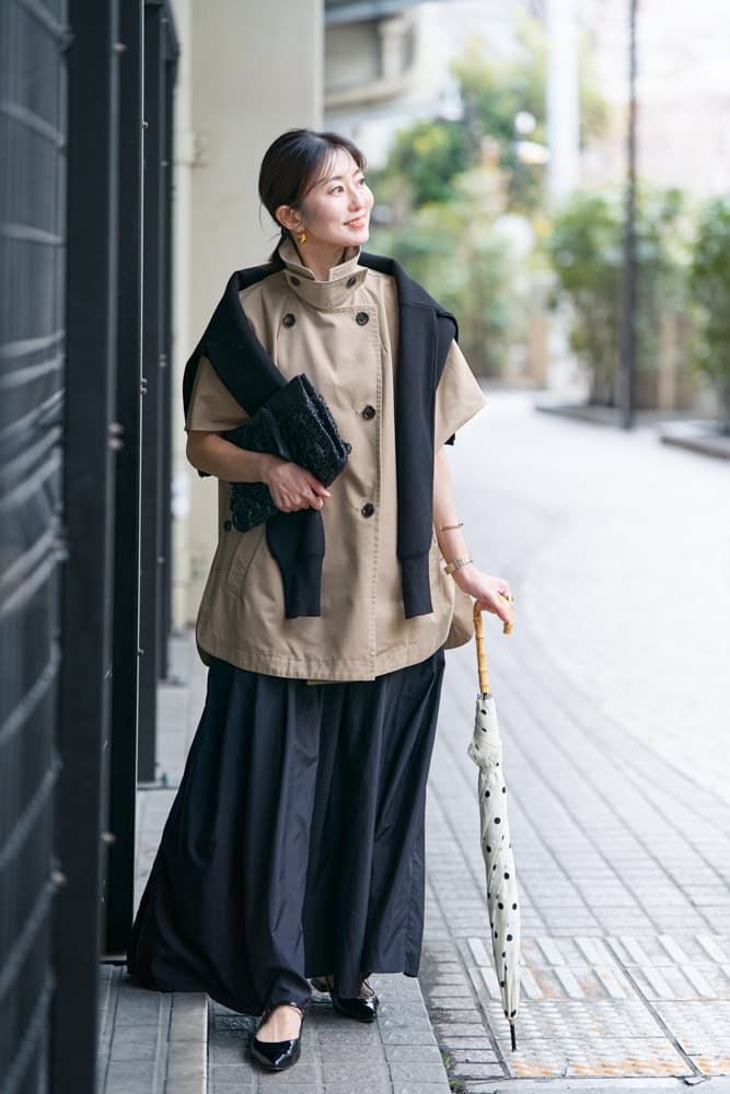 3. 着回し力で選ぶなら、ポンチョ型「トレンチ」が断然オススメ!STORYライター私物コーデ<3選>