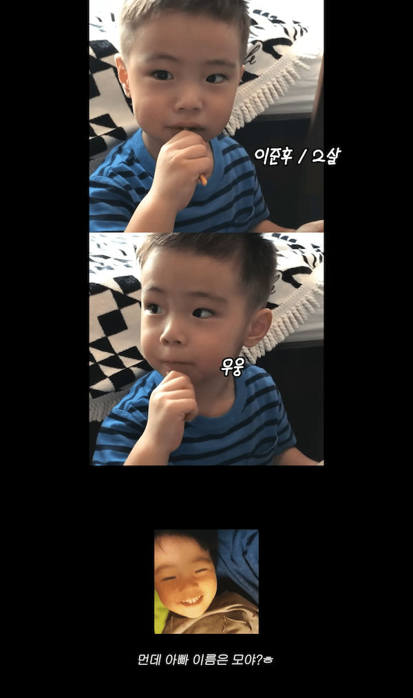 母のイ・ミンジョンにそっくりの愛らしいルックスと、キラキラした瞳が印象的で、父のイ・ビョンホンがジュヌくんに「パパの名前は?」と問いかける微笑ましいシーンも含まれていた。