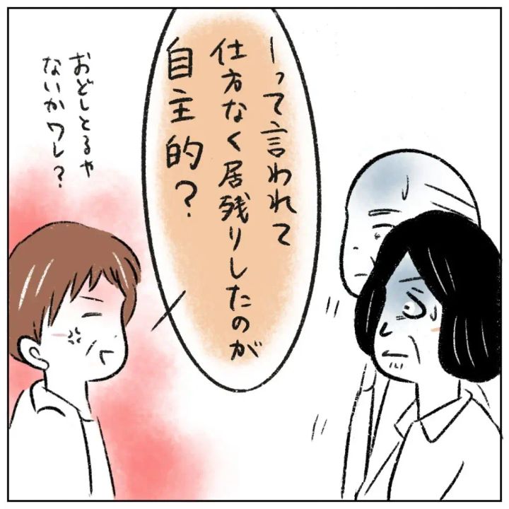 「って言われて仕方なく居残りしたのが自主的?」と必死に怒りを抑えながら性根先生に聞き返すお母さん。