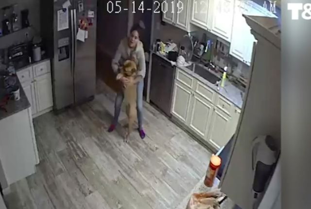 防犯カメラが映し出したガールフレンドと愛犬による夜のダンスパーティーの様子は、こちらの動画からご覧いただけます。