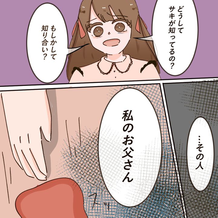 友達にそんなことを言われたアイさんは慌てて「どうしてサキが知ってるの?もしかして知り合い?」と心配そうに聞くと、「その人、私のお父さん。」サキさんから衝撃的な言葉が返ってきて、思わず持っていたスマホを落としてしまったアイさんです。