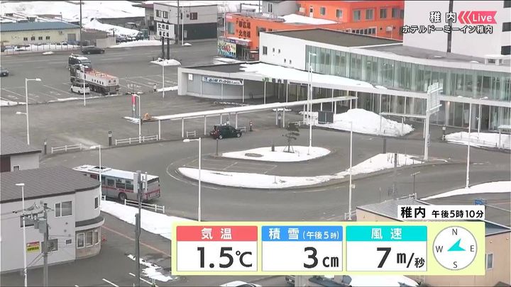 背景は3日午後5時ごろの稚内情報カメラ