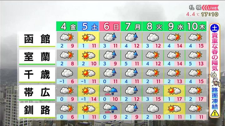 4日(金)の札幌の朝昼晩の天気