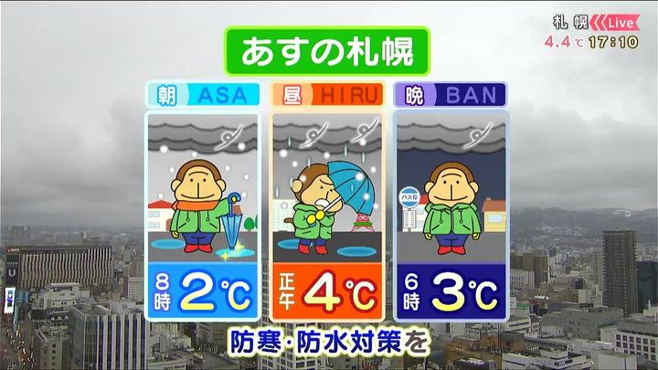 あす4日(金)の札幌です!朝昼晩の天気をもんすけでお伝えします!