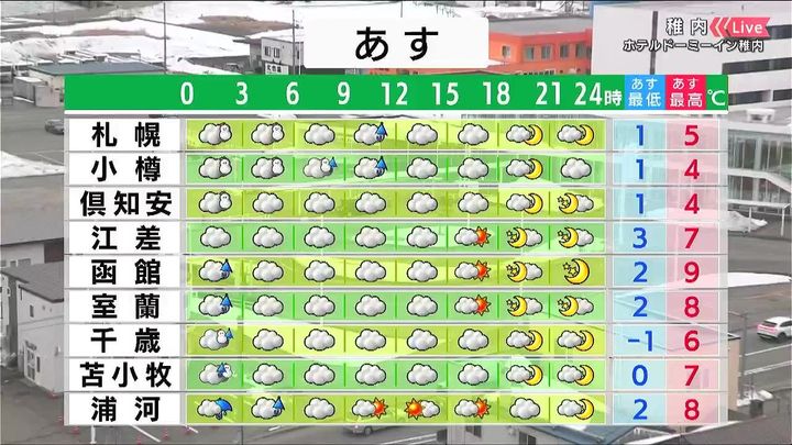 ・あすの札幌の朝昼晩の天気
