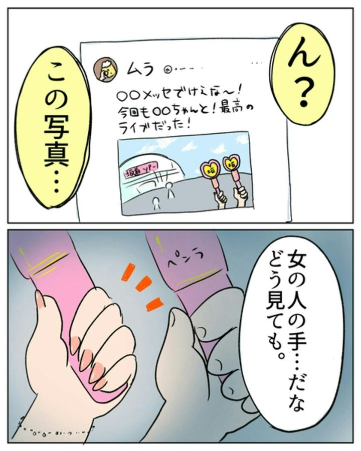 このあと、にしこさんはこの裏アカを見るかどうか悩みますが、鍵アカではなかったため、少し覗いてみることに。すると、先日デートで行った水族館写真が投稿されており、なぜか「女友だちと」と書かれていました。ここで、女のカンが働いたにしこさんは、裏アカを徹底的にチェックすることに。すると…。