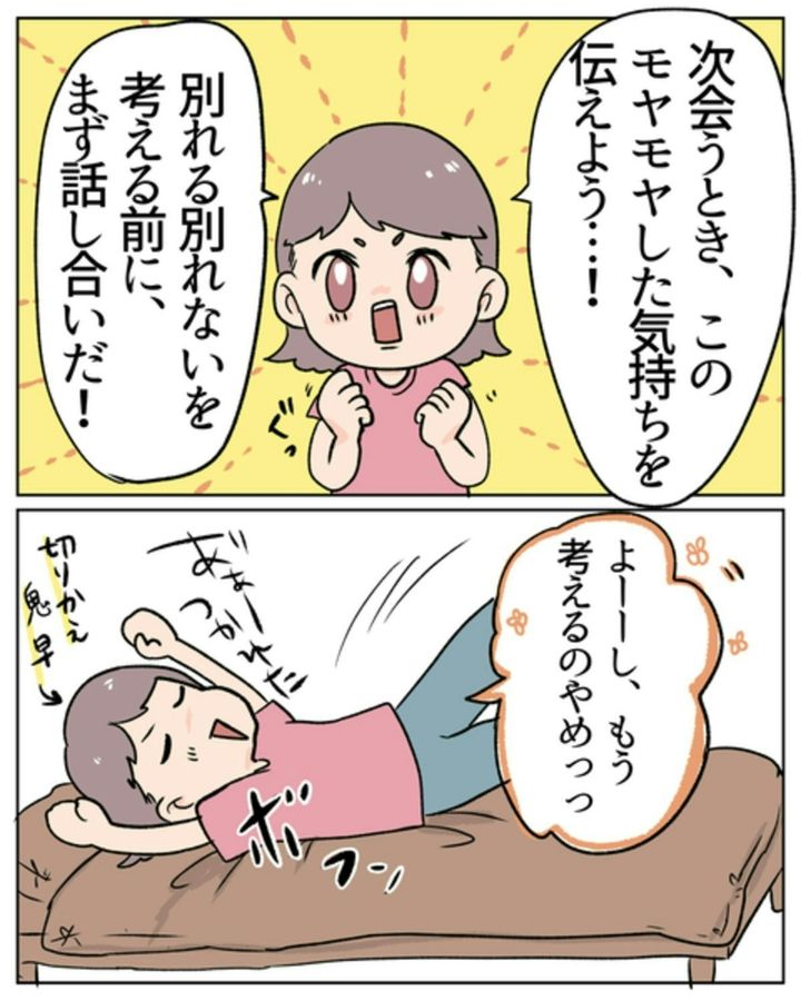 にしこさんが野々村くんに対してモヤモヤしていたとき、偶然にもSNS裏アカを発見しました。今までのこと、そしてSNSが決定打となり、交際1か月で別れを決意します。付き合った期間に関係なく、大切にされていないと感じたら、にしこさんのように早めの決断が大切かもしれませんね。