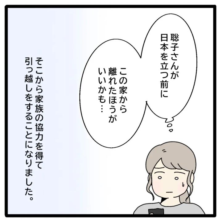 美沙さんの言葉を聞いて「聡子さんが日本を立つ前にこの家から離れたほうがいいかも・・・」と思った理恵さん。