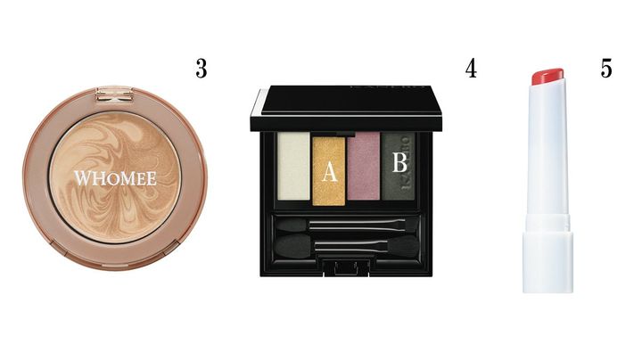 3.フーミー パウダリームグロウ ペルシャベージュ ¥2,200/Nuzzle 4.カネボウ カラーシャドウ EX2 ¥6,050(セット価格・限定)/カネボウインターナショナルDiv. 5.ビーアイドル つやぷるリップR 102 ¥1,540(2/26発売)/かならぼ