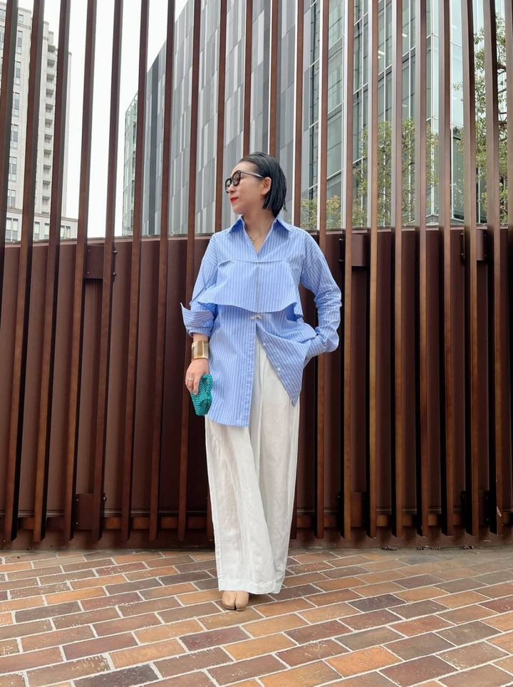 【おしゃれスナップ】王道ストライプ柄の「シャツ」と「ビスチェ」セットが素敵過ぎ|畑中由香さん