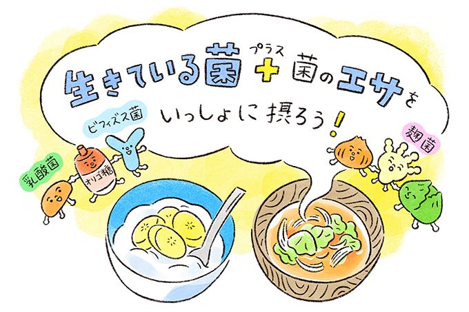 「乳酸菌やビフィズス菌など腸にいい菌を生きたまま摂取すること(プロバイオティクス)と、オリゴ糖や食物繊維といった菌たちのエサになるようなもの(プレバイオティクス)を一緒にとることが、腸内環境をよくするのに効果的。これを『シンバイオティクス』と言います」