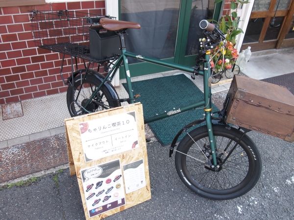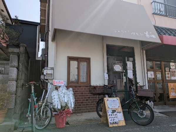 場所は、阪急高槻市駅から徒歩11分ほど。お店の前には、自転車が。屋根にも自転車のマークがあり、まさに「ちゃりんこ喫茶10」さんらしい店構えです。