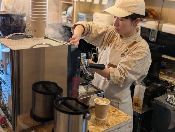 そして、一緒にいただいたカフェラテは、奥様が一杯ずつ丁寧に淹れてくれるこだわりの一杯。奥様はコーヒー店で働かれた経験を活かし、エスプレッソマシンを使用したドリンクを提供されています。