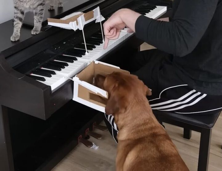 手作り装置で演奏参加! 犬猫コンビが奏でるピアノの音色が素敵