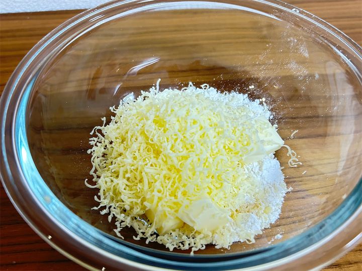 Megumiさんの動画ではパルミジャーノ・レッジャーノを使っていますが、手に入らなかったため、筆者はチェダーチーズでチャレンジすることに。