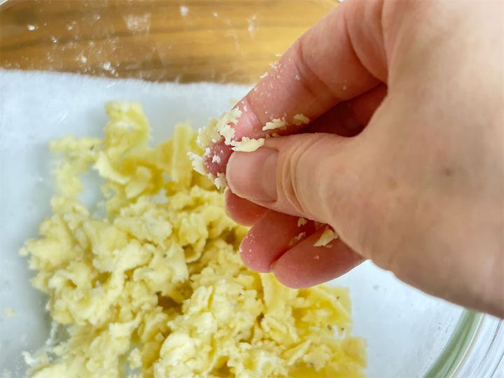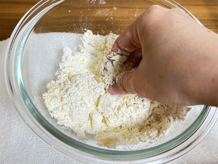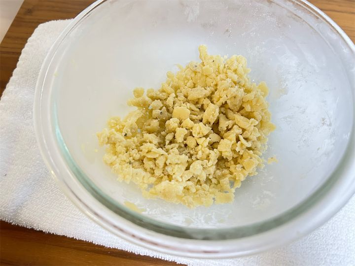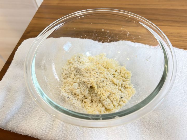 使う直前まで冷やしておくことによって、よりサクサクとした食感のクランブルに仕上がるようです。