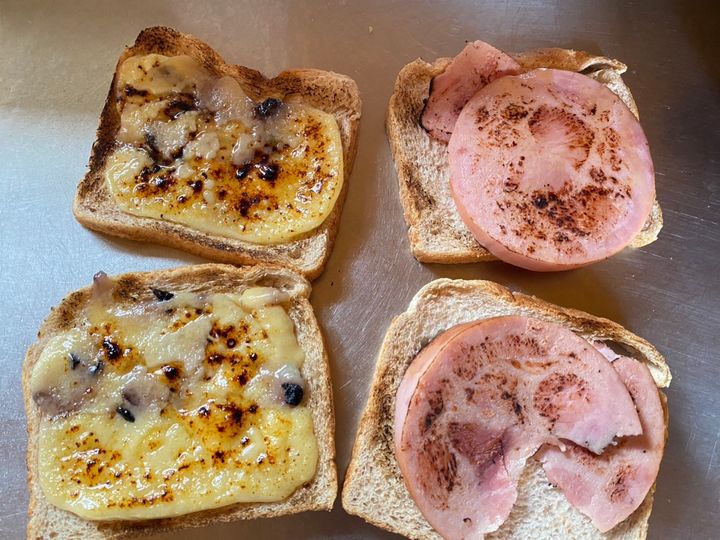 ハムとチーズを両サイドで炙ってから、サンドイッチにして食べました。香ばしくて美味しかった!