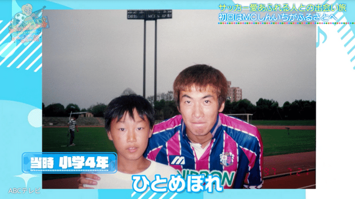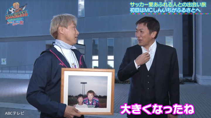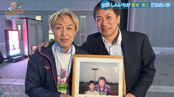 昔からしんいちの推しクラブは、セレッソ大阪。あこがれの選手は、セレッソ大阪の一時代を築き、日本代表としても活躍した西澤明訓氏だ。しんいちは、小学4年生のときにテレビの収録で西澤氏に出会い、記念撮影をしてもらったことで、「そっから一目惚れというか、好き。ずっと応援する」と思ったそう。「収録の照明が消えても、ずっと待っていてくれたのが西澤さん。小学校4年生のしんいちくん、グサッと刺さりました」と、しんいちは当時を昨日のことのように覚えている。